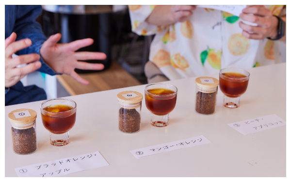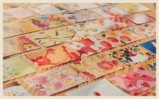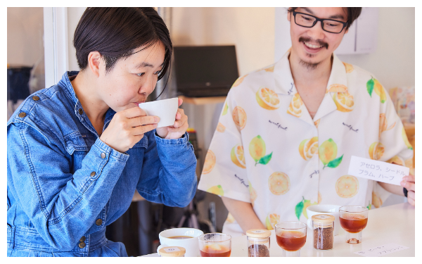 そのシーズンやテーマに合わせてその都度⾖の仕入れを変えて、焙煎とともに細やかな表現をお客様に届けられるようにしています。なんとそのテイスティングバリエーションは300以上もあり、たくさんの種類からお客様好みのコーヒーを選んでいただけます。農園の情報などが書かれた豆の紹介カードも、コーヒー体験の一つとしてお楽しみいただけるように作っています。