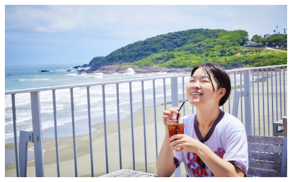 そして、海が見える素敵なカフェが近くにあるということで、帰りにテラス席でさっき作ったばかりの水出しコーヒーを頂くことに・・・。