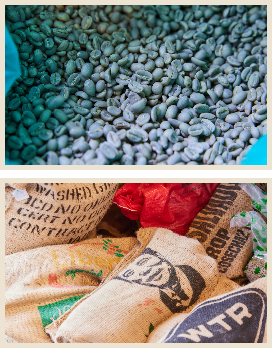 日向珈琲は、「スペシャルティコーヒー」を専門に取り扱っています。その中でもスペシャルティコーヒーよりさらに上の、「トップスペシャルティ」も多く取り扱っています。写真のように生豆が緑っぽいのは鮮度がいい証拠です。