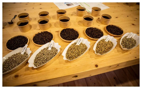 これまでにわたしが旅した国などにちなんだ稀有な豆を世界から取り寄せて頂いて、事前に試飲を重ねて、この日の最終選考に残ったのがニカラグア、イエメン、エチオピア、ネパール、フィリピンの希少なお豆さんたち。